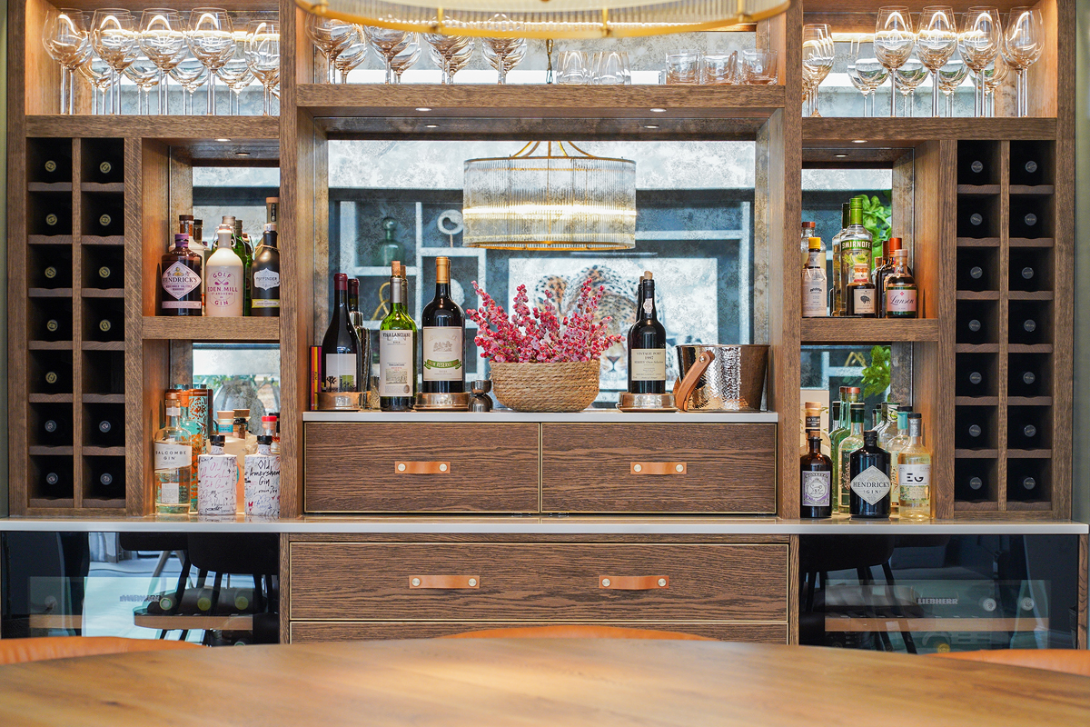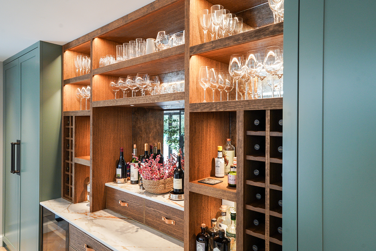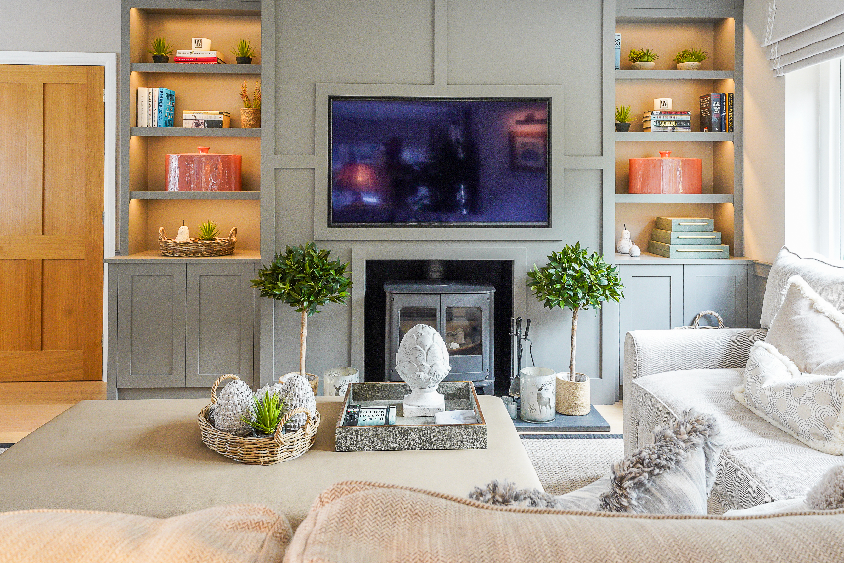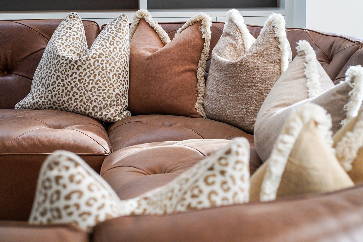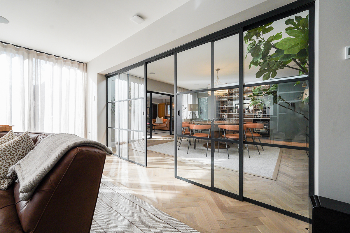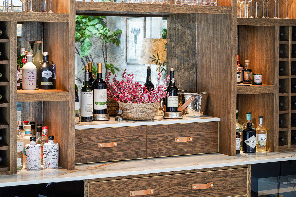 Both ends of this expansive country home, including garden facing extension were given a fresh facelift. This included procurement of bespoke sofas and footstools, rugs, new custom curtains and blinds expertly fitted by our talented curtain maker, kitchen furniture, joinery throughout and a stunning dining area featuring a sociable circle of our London Chairs in cognac.