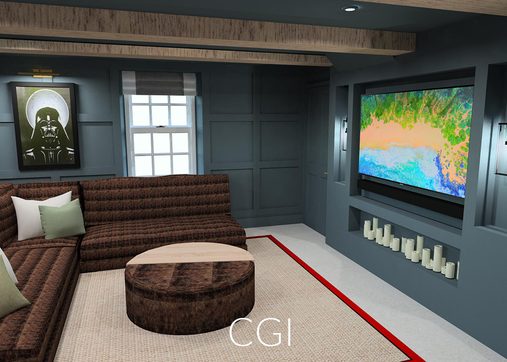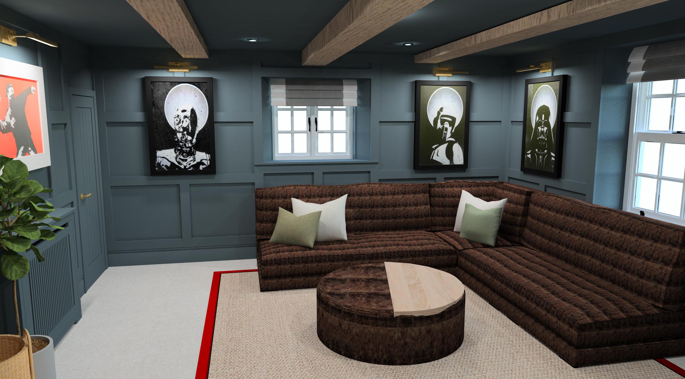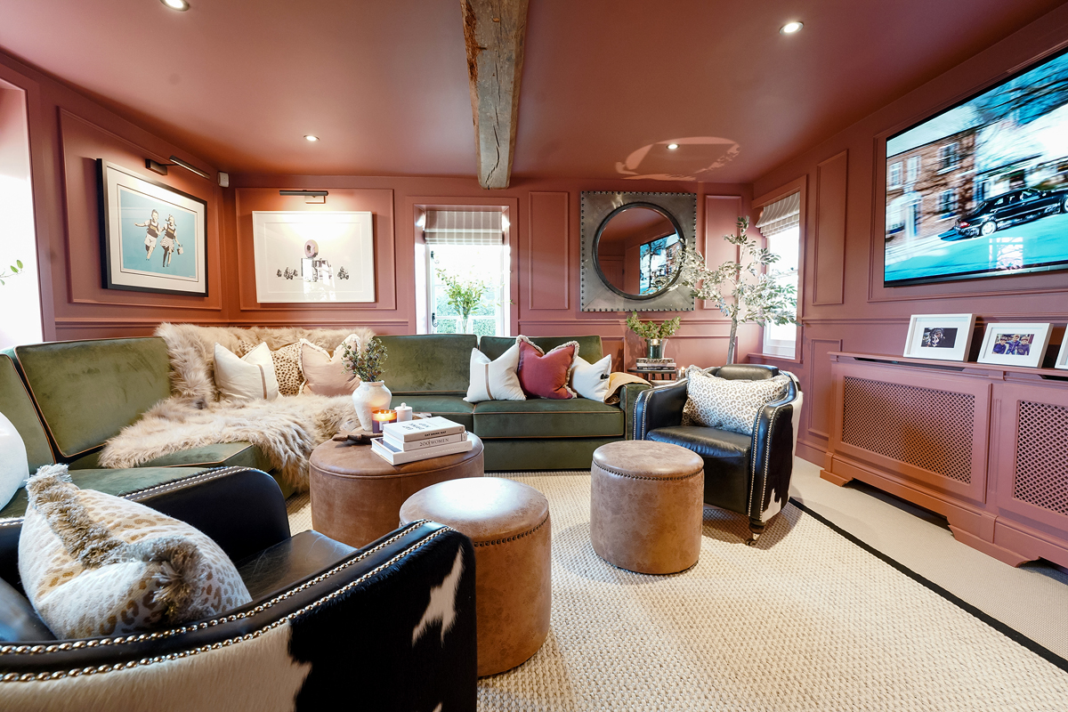 The Brief: To transform two underused rooms into a homely yet eye-catching lounge paradise. We created unexpected living spaces in this period family cottage using custom bespoke sofa choices, cosy unusual colours and a blend of leather, faux fur and sisal. These revamped family spaces are proof that every part of your home can be used to thrill and surprise anyone walking in. The playful transformation of a toy storage cupboard into a hidden 'Zoom Room' was an unexpected bonus!