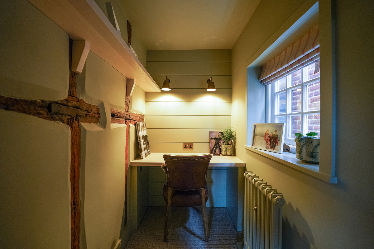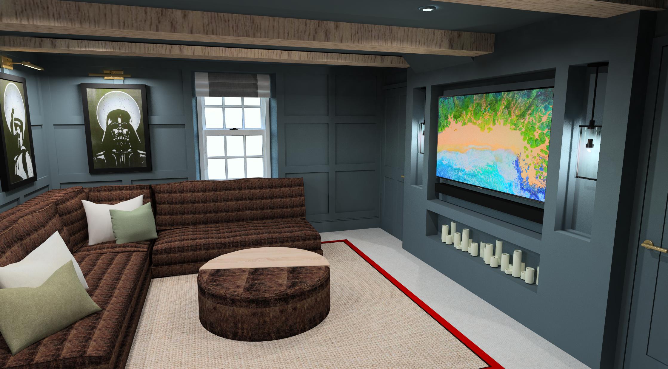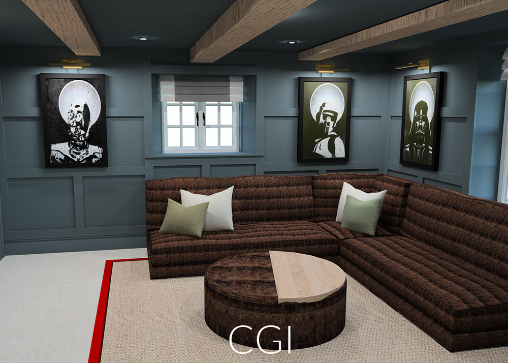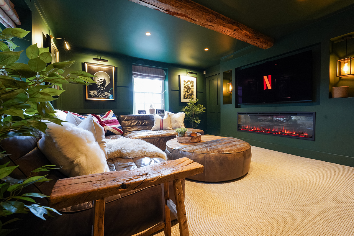 The Brief: To transform two underused rooms into a homely yet eye-catching lounge paradise. We created unexpected living spaces in this period family cottage using custom bespoke sofa choices, cosy unusual colours and a blend of leather, faux fur and sisal. These revamped family spaces are proof that every part of your home can be used to thrill and surprise anyone walking in. The playful transformation of a toy storage cupboard into a hidden 'Zoom Room' was an unexpected bonus!
