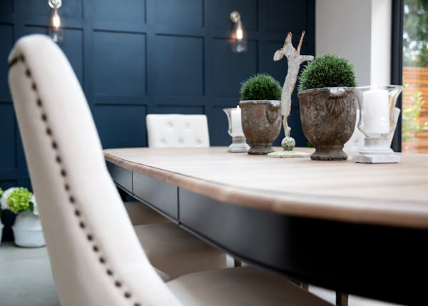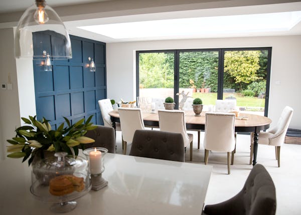 Working closely on the interior architecture with her trusted team of builders Ali has given the ground floor of this home a refreshing and airy facelift. The removal of two walls and reimagining of the space allows family life to flow around it easily and stylishly. Beautifully contrasting oversized island and joinery compliments the stone flooring and panelled dining area wall. It becomes a zoned space where informal living and elegant style come together, spilling seamlessly into the outside area through bifold doors and level flooring.