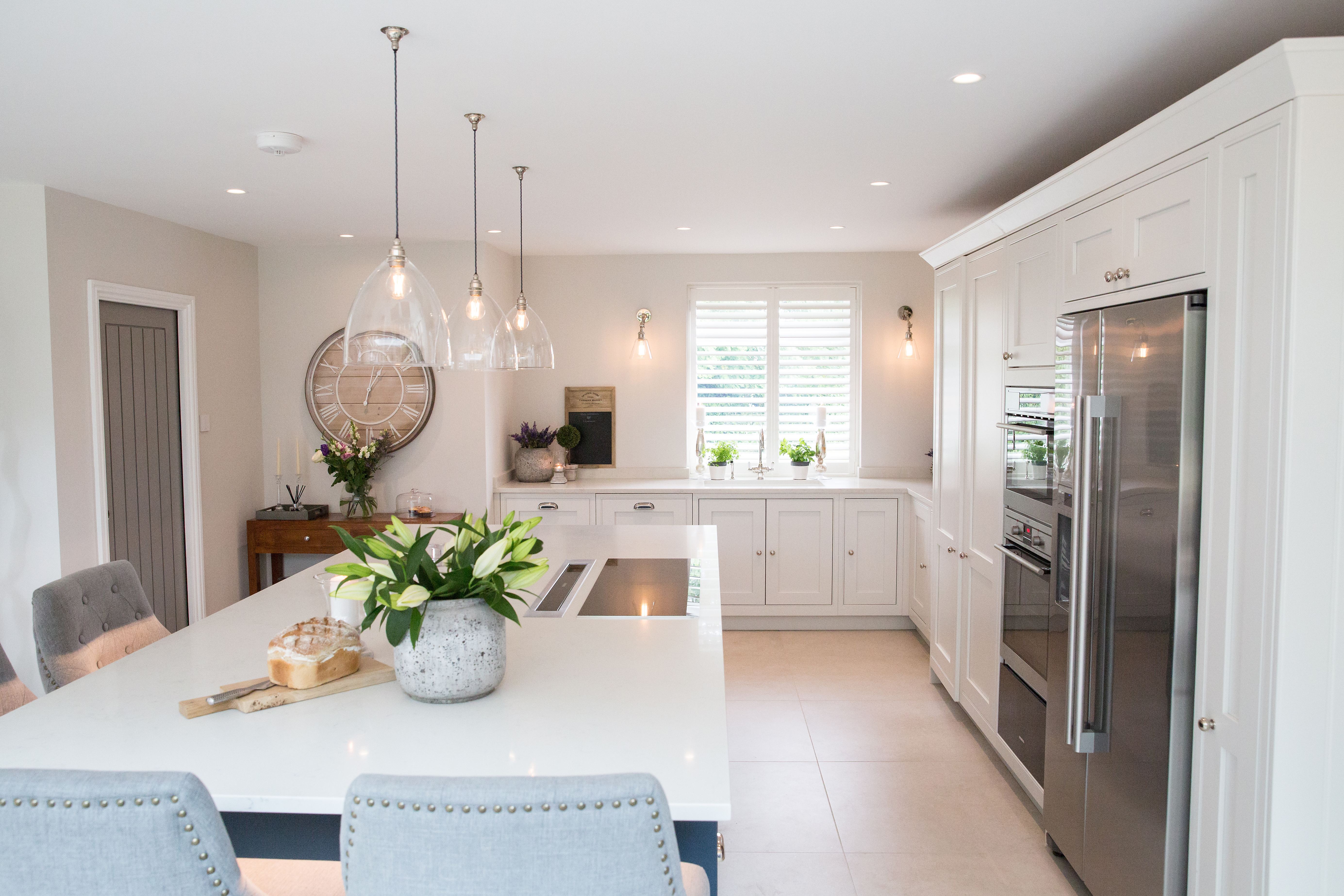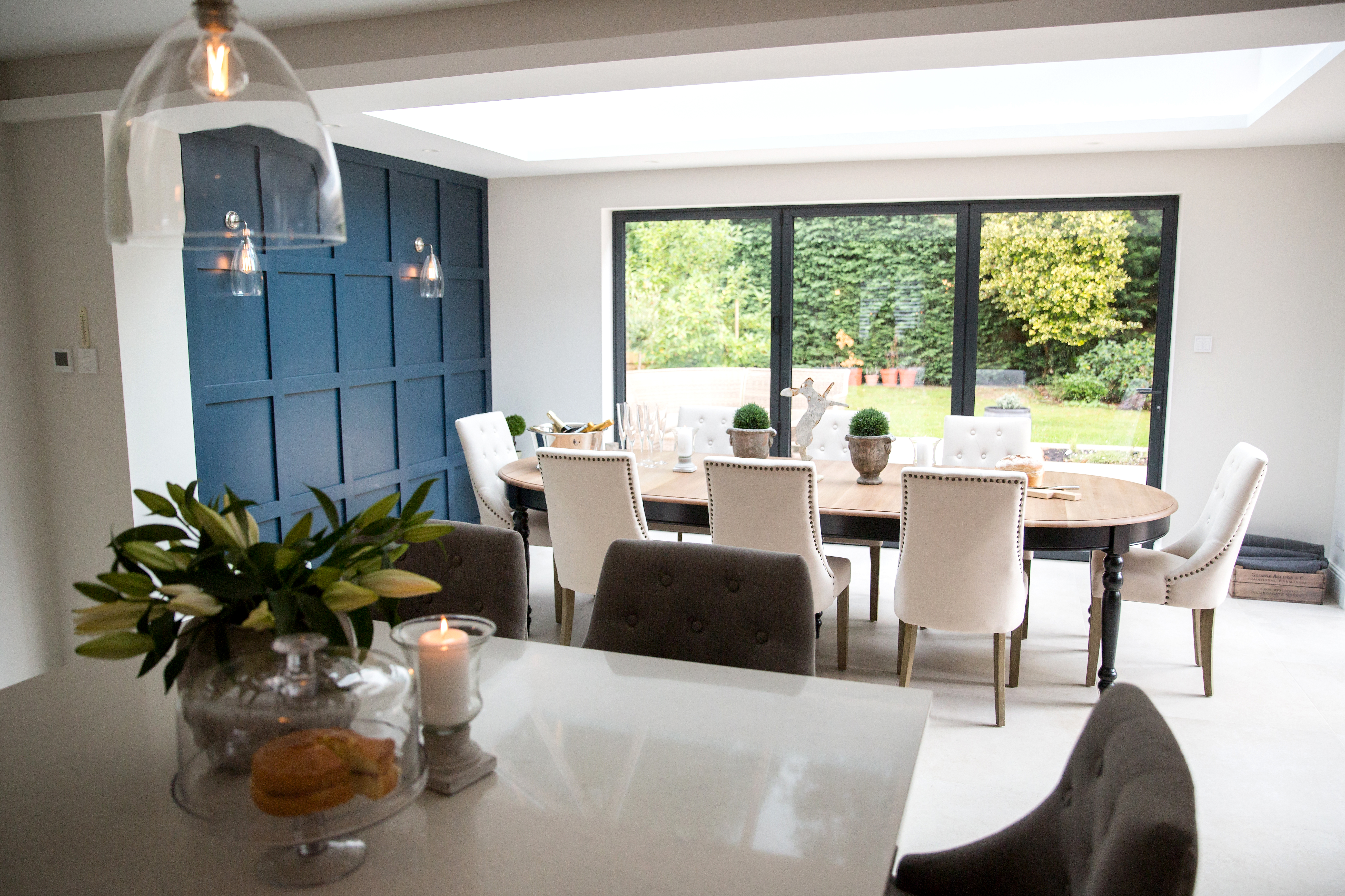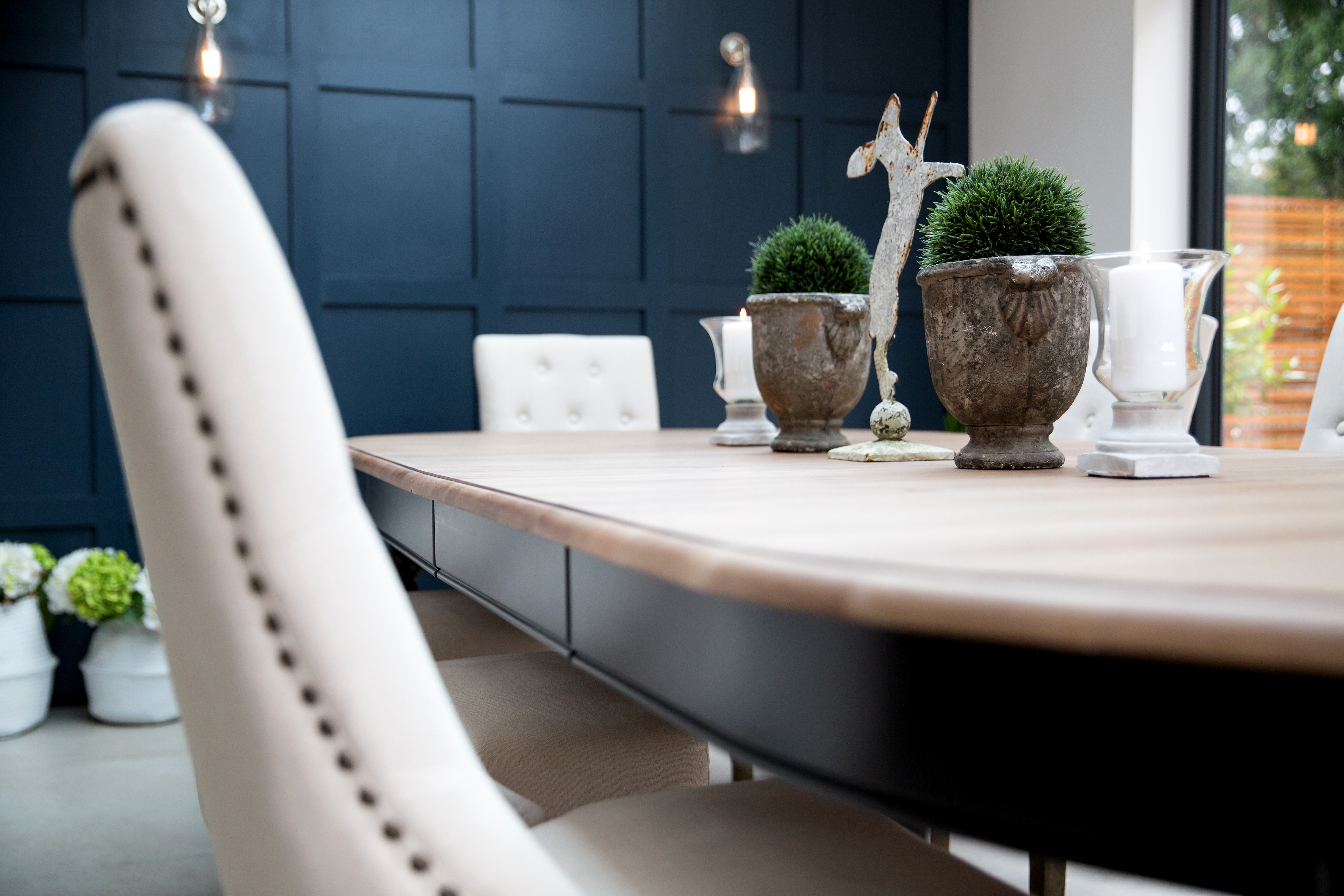 Working closely on the interior architecture with her trusted team of builders Ali has given the ground floor of this home a refreshing and airy facelift. The removal of two walls and reimagining of the space allows family life to flow around it easily and stylishly. Beautifully contrasting oversized island and joinery compliments the stone flooring and panelled dining area wall. It becomes a zoned space where informal living and elegant style come together, spilling seamlessly into the outside area through bifold doors and level flooring.