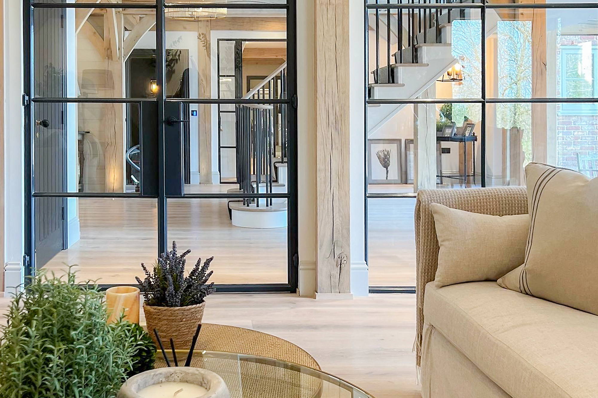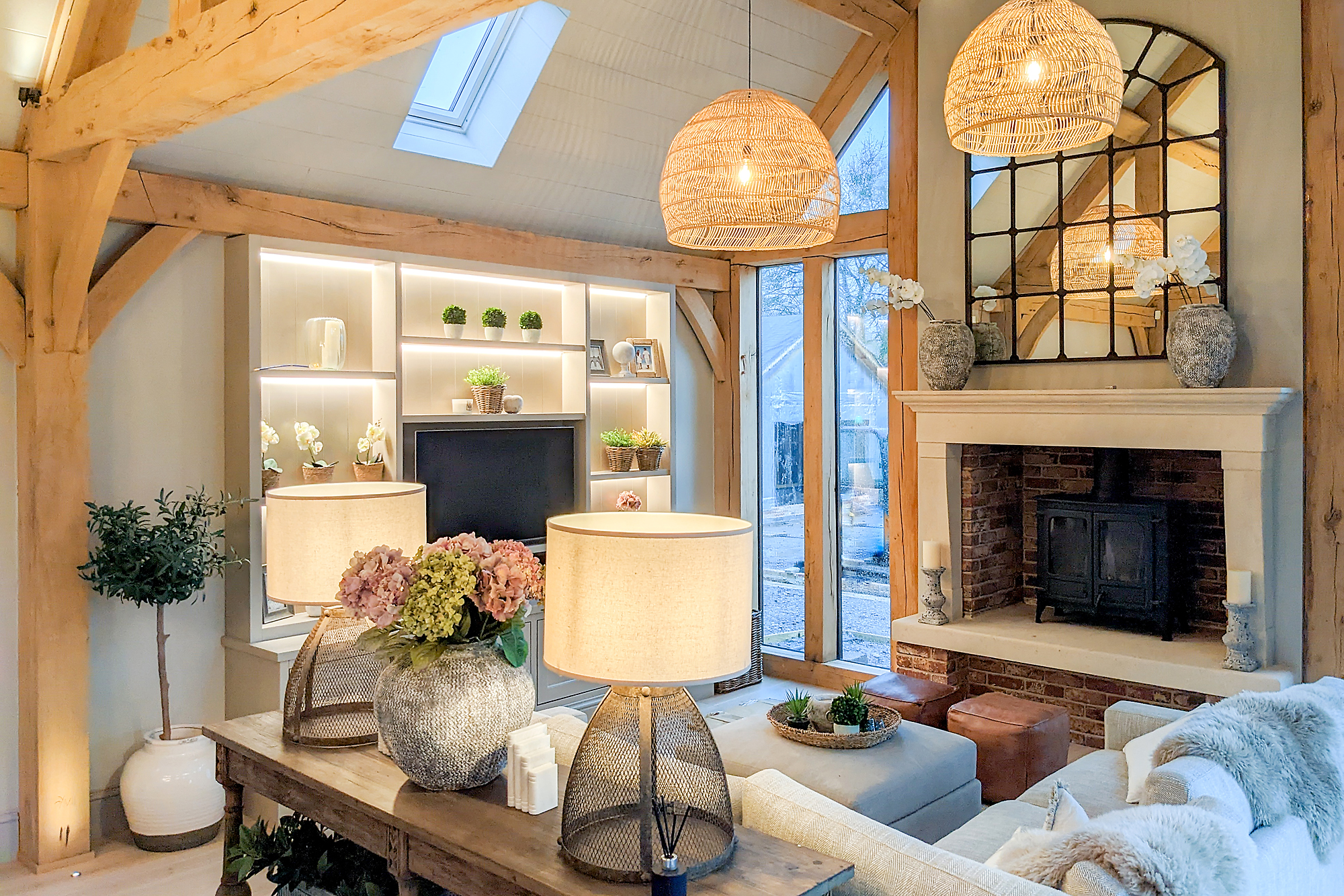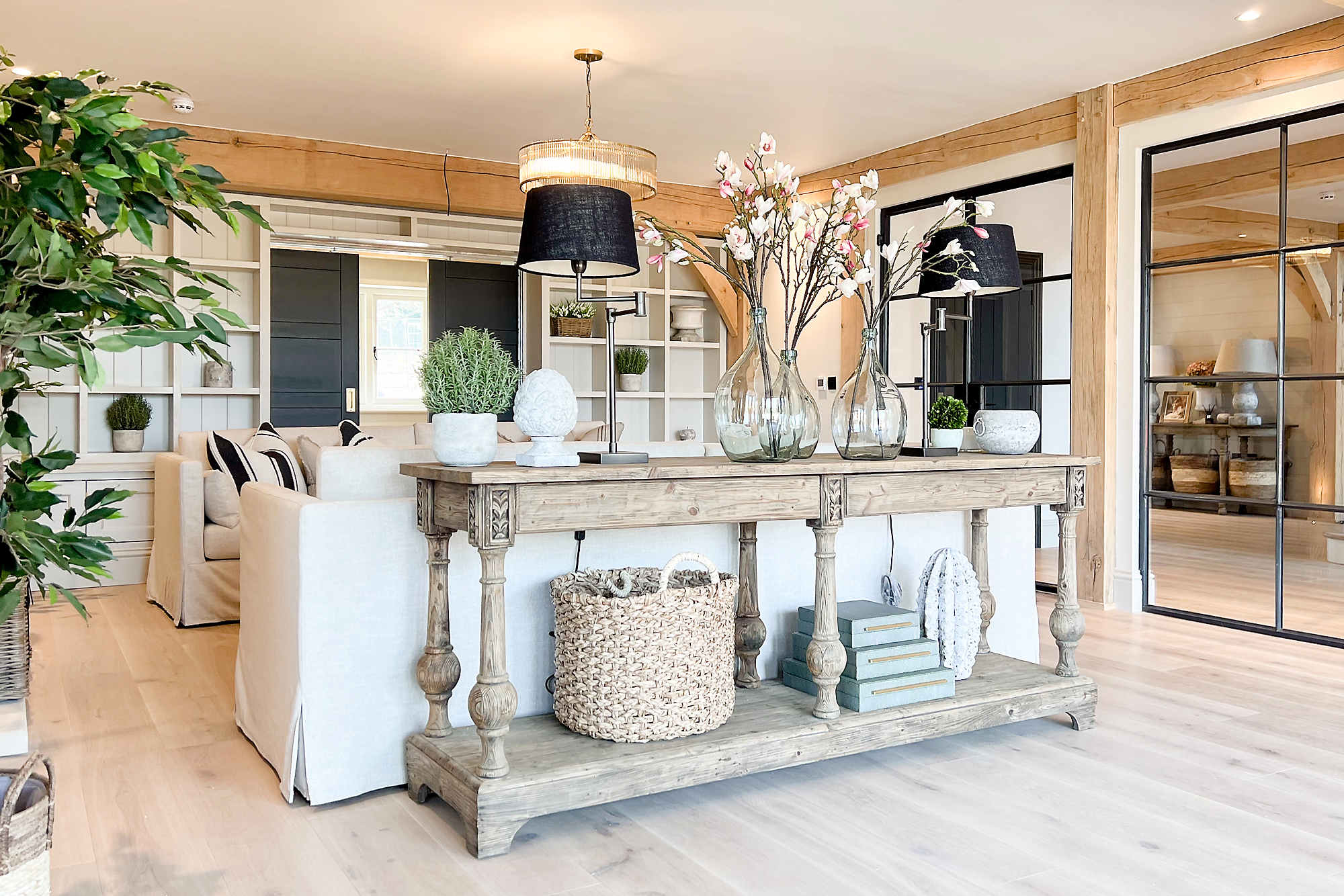 Presented with a beautiful yet vast and empty structure in the South West of England, we set to turn this oak framed building into a home. The use of modern metals combined with the rustic warmth of wool, wicker and wood, allowed textures to run wild throughout this year long project. The empty shell became a dwelling whose every space and every corner serves a functional purpose, catches the eye and draws you comfortably into its rural, relaxing luxury.