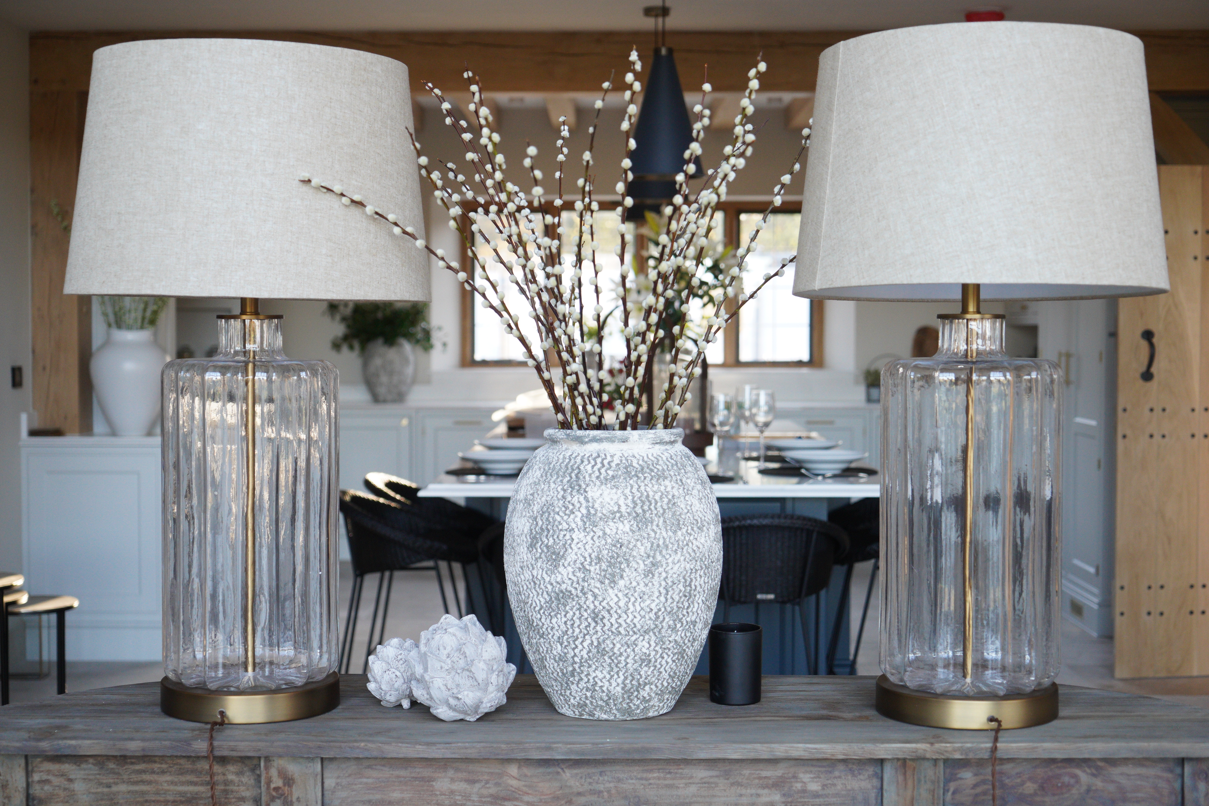 This house benefitted from a complete interior fit out, from beds to mirrors to consoles and lamps. The interior architecture had already been planned and executed by the time Ali was brought in so she found ways to create a perfect home around the many unusual decisions made by the builders. Its cavernous rooms and high ceilings required oversized thinking and luxury comfort was pushed to the max.